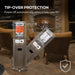 Your safety is paramount, which is why our heater includes a robust metal guard that not only safeguards the flame from the elements but also ensures that it's always contained. In the rare event that your heater tips, a built-in turn-off switch activates when tilted over a 45-degree angle, providing an extra layer of security for you and your loved ones.