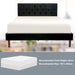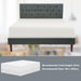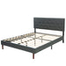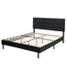 Still frustrated with back pain caused by uncomfortable bed frames? The king-size bed frame with an upholstered headboard will help you solve this problem. Crafted from superior MDF and engineered wood, the platform bed frame promises long-term durability for prolonged life. The heavy-duty steel frame, adjustable middle legs and reinforced tapered legs add extra stability. With thickened sponge padding and ventilated linen fabric surface, the soft headboard provides a comfortable experience for you. What's more, the bed frame with wood slats lets you sleep and rest in a quiet environment due to the appropriate leg clearance and muffler pad. All kinds of mattresses can be placed on the bed frame without box springs (mattress not included). This modern bed frame with chic button tufted design will be an aesthetically appealing piece of furniture for the bedroom or guest room. If you are looking for such a product, don't hesitate to place an order! Sturdy Construction with High Stability: Made of high-quality steel frame, MDF and engineered wood, the king-size bed frame is sturdy and durable for long-lasting service life. Additionally, the adjustable middle legs and reinforced tapered legs ensure stable support and outstanding load-bearing capacity. Upholstered Bed Frame: This upholstered platform bed frame is filled with high elastic sponge, which allows you to rest in bed or engage in leisure activities comfortably. The breathable with modern style and chic tufting design it is suitable for bedrooms, and guest rooms and the skin-friendly linen fabric surface gives you a soft touch and keeps you away from sweating in summer. Noise-free Design for Improved Comfort: Featuring durable wooden slats, the platform bed frame with appropriate leg clearance will not make annoying noises when turning over. The muffler pad on the steel bed frame produces no crinkling sound for a quiet sleeping environment. No Box Spring Need: The mattress can be put on the bed frame slats directly without the need for a box spring, thus helping you save a lot of time and money. It is perfect for a variety of mattresses, such as latex, memory foam, etc. The recommended thickness of the mattress is 25cm (mattress not included). Easy Assembly and Multiple Scenes: All detailed instructions and complete accessories are included in the package, so you can install this support bedstead quickly. Premium buckle attaches the slats together for easy installation. The combination of modern style and chic button tufted design makes it suitable for bedrooms, guest rooms, apartments, etc.