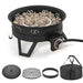 This dual-function pit not only serves as a robust 58,000 BTU heater but also includes a cooking grill for your culinary outdoor activities. Forget the hassle of starting a fire; our fire pit features a safe and easy-to-use ignition system that lets you adjust flames with ease. With foldable legs, this fire pit ensures portability and is complemented by a convenient carrying bag. Make every outdoor moment unforgettable with this ideal patio addition. 2-in-1 Versatile Fire Pit: With a cooking grill included, this portable fire pit doubles as a grill, offering the perfect solution for both heating and outdoor cooking. Its 58,000 BTU heat output will quickly drive away your coldness. Safe and Simple to Ignite: Equipped with a straightforward ignition system, this propane firepit ensures safety and ease during operation. The functional ignition device makes it flexible to adjust the fire as you need. Folding and Portable Design: Featuring foldable legs, this fire pit can be folded into a compact size when not in use. It also comes with a convenient carrying bag, making transportation a breeze. Complete Accessories: Everything needed comes packed in one set, including lava rocks, a tank seat for 9kg propane cylinder, a cooking grill and a lid with handle. This comprehensive package ensures you can set up your fire experience right out of the box. Ideal Patio Addition: Enhance your backyard or patio ambiance with this elegant and compact fire pit. Its sleek design and versatile functionality make it a perfect centerpiece for outdoor gatherings. Note: 1. Please do not completely cover the burner with lava rocks when igniting.2. Please keep volcanic rocks always dry to prevent splashes when using.