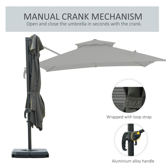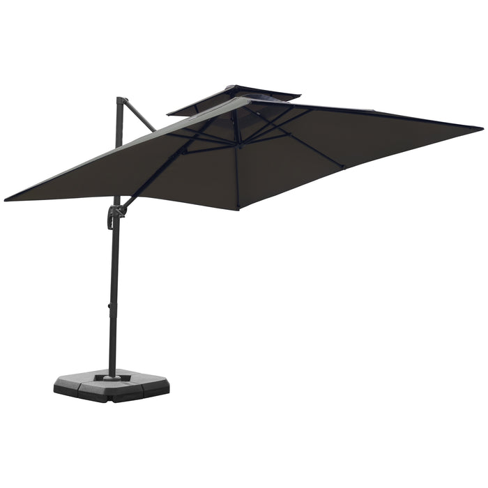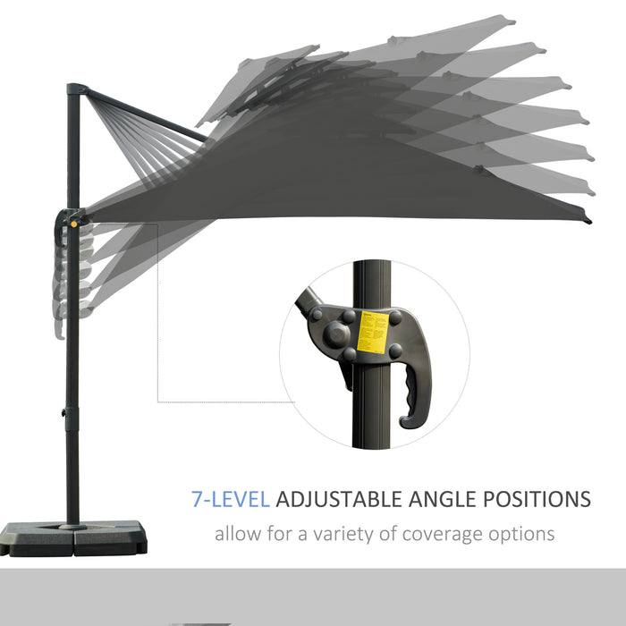 Experience the ultimate in outdoor relaxation and sun protection with our elegant cantilever umbrella. Perfect for patios, pool sides, and gardens, this umbrella offers a generous shady retreat from the sun's intense rays and heat. Discover the fusion of functionality and style with its effortless maneuverability and sleek design.