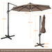 Our cantilever umbrella boasts an elegant design with a versatile tilt mechanism featuring three select positions. With a smooth 360-degree rotation, you can effortlessly find the ideal angle to shield yourself from the sun's rays, ensuring maximum comfort throughout the day. Adjusting your shade is a breeze with the user-friendly crank lift handle. When not serving its purpose, the umbrella can be neatly secured with an included loop strap, promoting a tidy and compact storage solution.