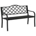 The intricate pattern that adorns the backrest of the bench is a nod to classic elegance and creates a focal point that is sure to draw compliments. Its thoughtful design is complemented by protective footpads, which safeguard both the frame of the bench and your outdoor surfaces.