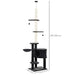 Our Feline Fun Fortress stands at an impressive dimension of 55L x 45W x 220-265H cm, with the ability to bear a total weight of 30kg. Designed to accommodate adult cats, this 5-tier edifice includes a spacious condo, an inviting hammock, cushioned viewing perches, and additional features like a tease cat ball to enrich your cat's playtime.