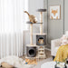 At the heart of this towering structure is a solid and sturdy build made of reinforced multi-layer wood and robust rubber wood supports. This ensures longevity and resilience, making it a long-lasting abode for your cats.