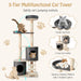 Our cat tree is thoughtfully crafted with sisal-covered scratching posts to satisfy your cat's natural scratching instincts while keeping your furniture intact. Additionally, a 3-step ladder aids your cats to reach their beloved high spots with ease, thus being gentle on their joints.