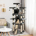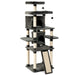 The cat tree features opulent top perches, equipped with teasing dangling balls that promise to elevate your cat’s playtime. Positioned at 173 cm, these perches provide a majestic view for your feline friends to scout their surroundings or simply revel in a moment of tranquility. The addition of cozy, plush cushions within the welcoming corners of the large condos offers a heavenly retreat for your kitties to recharge.
