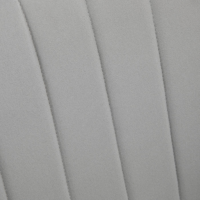 The stunning juxtaposition of a dark grey faux leather exterior paired with an opulent, velvet-feel interior invites a sophisticated two-tone aesthetic that makes a statement in any room. The chair's chic design commands attention, and its luxurious textures tantalize the senses, creating an ambience of refined elegance.
