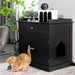 Our enclosure features a sizable interior chamber to accommodate a litter box, cozy bed, or a feast of cat edibles. Its robust structure ensures it can double as a convenient side table, thus serving your storage and display desires effortlessly. Say farewell to litter trails and trapped odors, as this enclosure is specifically designed to hold everything neatly inside. Dual doors grant effortless entry for maintenance and provide your feline friend with the privacy that they crave.