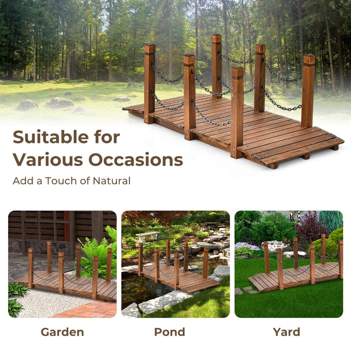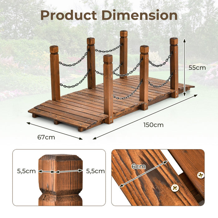 This wooden bridge is the epitome of rustic charm with its natural wood grain and classic silhouette. The carefully selected fir wood not only provides a durable structure but also blends harmoniously with any garden setting. Its carbonized finish offers enhanced color longevity, preserving the bridge's beauty through every season.