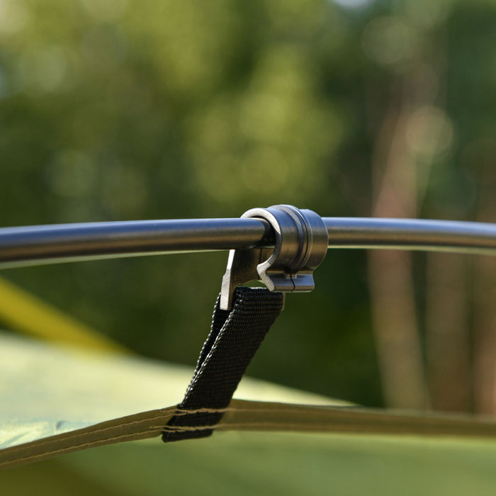 Made with a 190-thread count polyester shell, our tent is the trusty companion you need for shelter. The robust tightly woven fabric shields you from light weather conditions, so a bit of rain won't dampen your spirits. Entry and exit are a breeze, thanks to the large door, while three strategically placed windows ensure continuous airflow to maintain a pleasant internal climate.