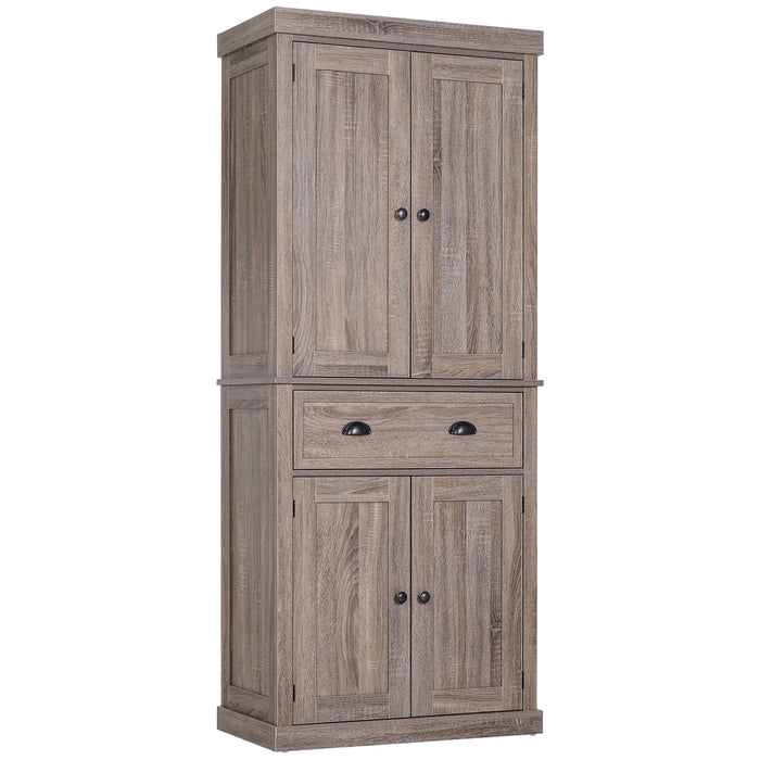 Measuring 184cm in height, 76cm in width, and 40.5cm in depth, with thoughtfully sized compartments and a drawer, this piece furnishes you with a substantial holding capacity. It's been meticulously crafted to optimize your storage space without overwhelming your kitchen or pantry area.