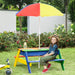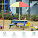 Introducing a vibrant addition to your garden or patio - our Kids' Rainbow Outdoor Picnic Table Set with Adjustable Umbrella. Perfect for little ones aged 3 to 7, this set is a colorful oasis where children can enjoy snacks, partake in arts and crafts, or delve into playful sandbox sessions.