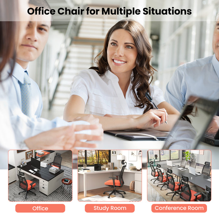 With a zest of color, the orange seat cushion adds a lively pop to your decor, while the classic black hue maintains a level of professional sophistication. This chair is not just about looks but about versatility, ready to match any room's design whether it be a traditional office space or a modern study room.