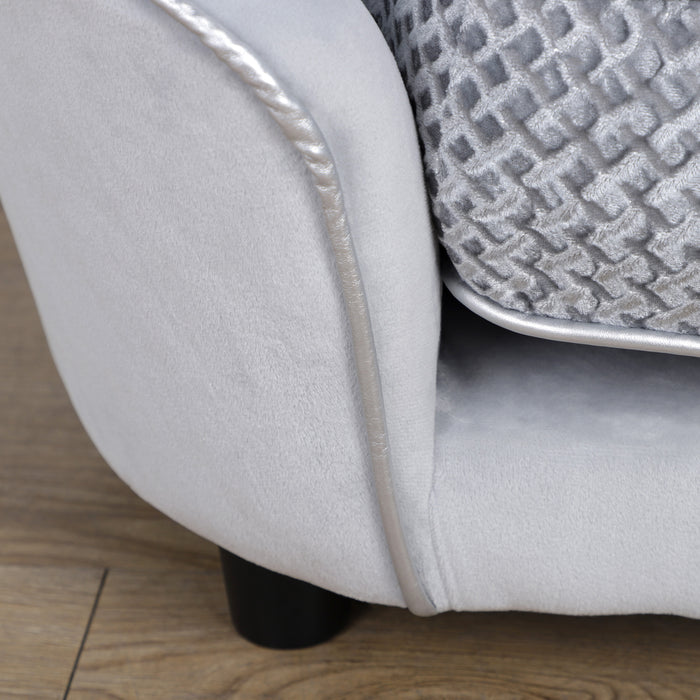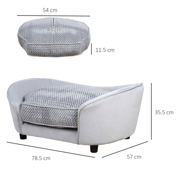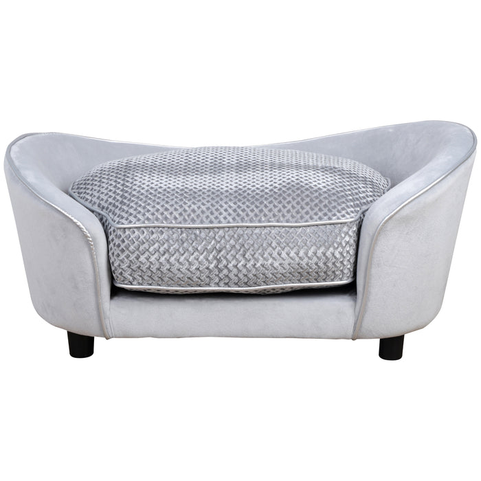 This fashionable pet couch is supported by a strong wooden frame, ensuring longevity and durability against daily use. Its elevated back and side arms offer a protective barrier, giving your pet a sense of security while lounging.