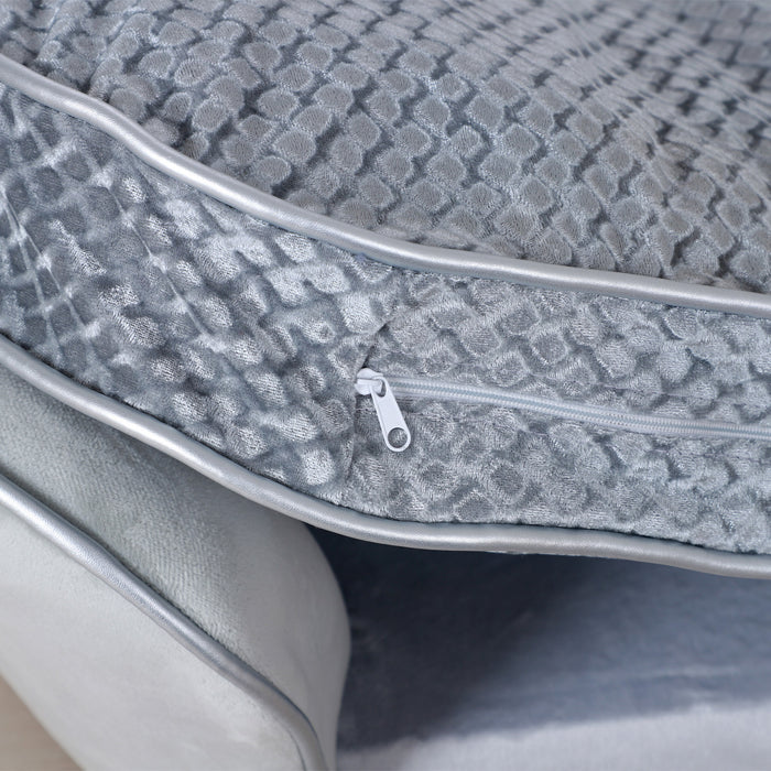This sumptuous cat bed is more than a piece of furniture; it is a statement of luxury. The semi-metallic grey central cushion adds a dash of glamour to your décor while providing a snug nook for your pet. It supports pets up to 20kg and requires assembly.