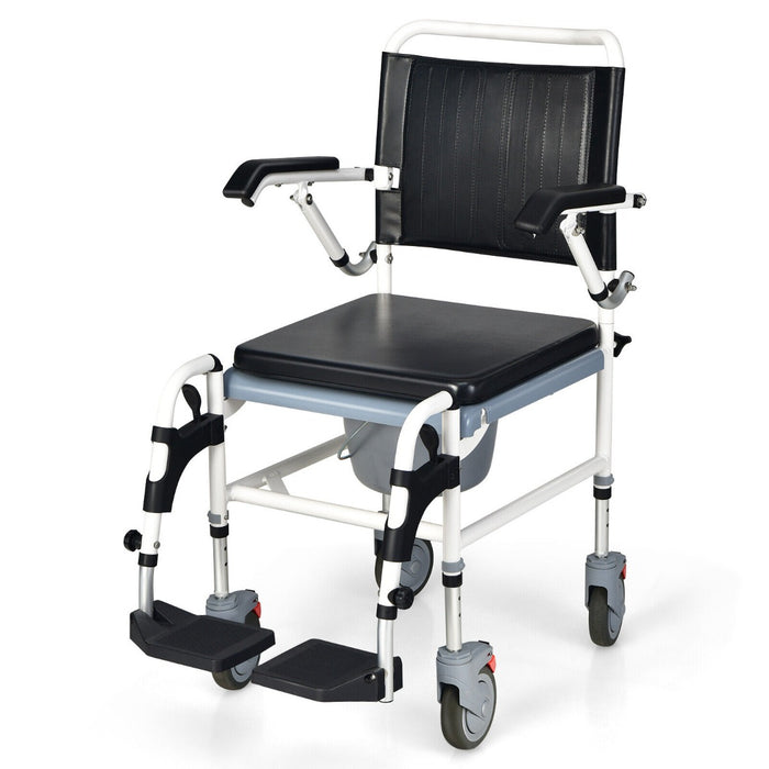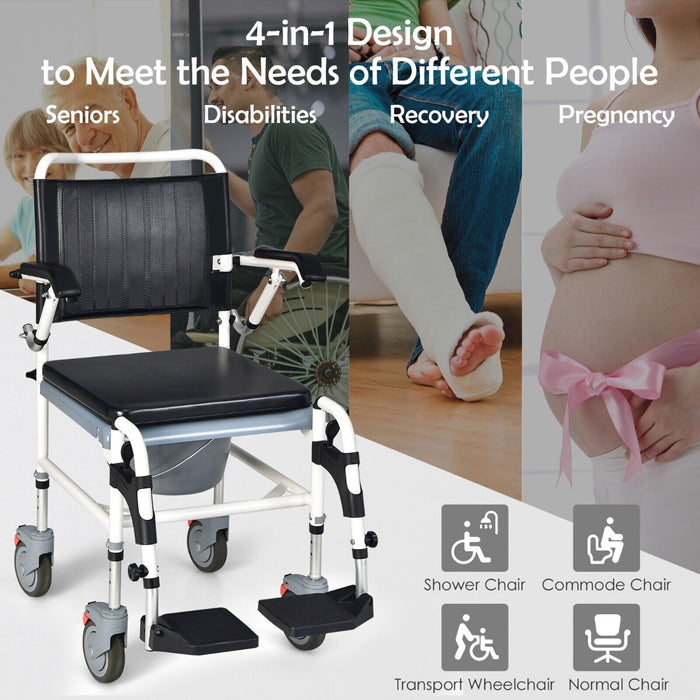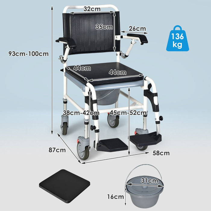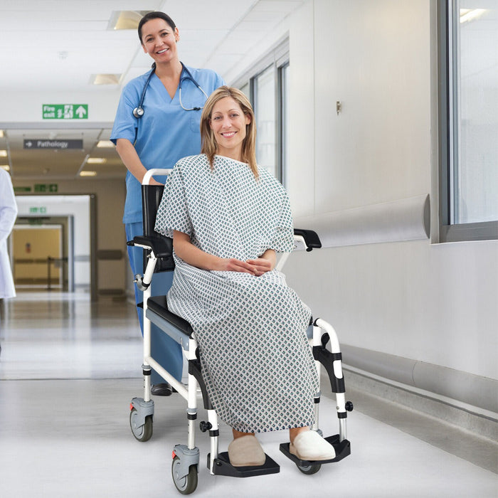 Equipped with four large, lockable universal wheels, the chair glides smoothly over multiple surfaces including carpets and bathroom tiles, ensuring a safe and disturbance-free operation. The secure brakes and medical-grade silent wheels underscore the chair's dedication to safety and quiet usage.