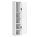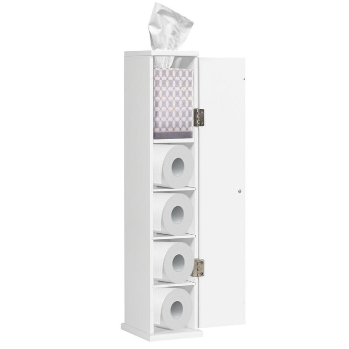 With dimensions of 16 x 17 x 69cm (L x W x H), this storage cabinet swiftly finds its place in narrow areas providing an ample space for storing roll papers and other essentials. It smartly fits in snug spaces between your sink vanity and toilet, wall and dryer, or toilet and tub.