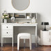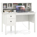 Get ready to revolutionize your workspace with our 120 cm spacious tabletop and 2 storage drawers that provide the ultimate organization solution. No more tangled cords! Our built-in charging station boasts 2 AC outlets,a USB and a Type-c ports, ensuring hassle-free connectivity for all your devices. Need extra storage? The 5-cubby storage rack on the tabletop offers the perfect space to showcase ornaments or store essentials. Crafted with premium materials and 6 sturdy legs for unrivaled stability, our desk also includes non-slip foot pads to protect your floors. Elegant and contemporary, this desk effortlessly complements any room decor. Elevate your home office, study, or bedroom today! Bullet Point: Computer Desk with Storage: With its 120 cm spacious tabletop and 2 storage drawers, this computer desk provides you with enough room to keep your essentials organized and within reach. Say hello to a clean and organized workspace! Built-in Charging Station: This white computer desk is equipped with 2 AC outlets, a USB and a Type-c port, allowing you to conveniently charge your devices and eliminate the need for messy extension cords. Stay connected and powered up during working! Multifunctional Tabletop Hutch: The tabletop hutch with 5 cubbies adds extra space to the writing desk for storing your books and stationery, or displaying ornaments. Showcase your style while keeping everything you need close at hand. Sturdy Construction: Crafted with high-quality materials, this computer workstation is built to last. With 6 sturdy legs, the desk boasts a robust construction to ensure stability. And it is fitted with non-slip foot pads to avoid unsightly scratches. Stylish Modern Appearance: The stylish modern PC desk brings a modern and fresh look to any room. Whether it’s for your home office, study, or bedroom, its clean lines and all-match color will seamlessly blend with any decoration style.
