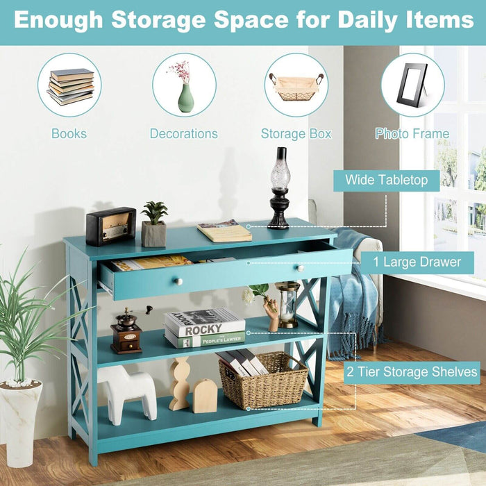 When it comes to upkeep, the table demands minimal effort. A quick wipe with a damp cloth is all it takes to keep it looking pristine. Available in a spectrum of colors to match your style: Black, Coffee, Grey, Turquoise, and White, this console table is a practical and aesthetic choice for those who appreciate executive elegance.