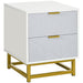 Boasting two well-proportioned drawers, this chic bedside table delivers ample space for your evening essentials, as well as additional belongings such as clothes, accessories, and personal items. Whether it's serving as a convenient spot for your nighttime reads or a stylish end table, its generous storage is as practical as it is appealing.