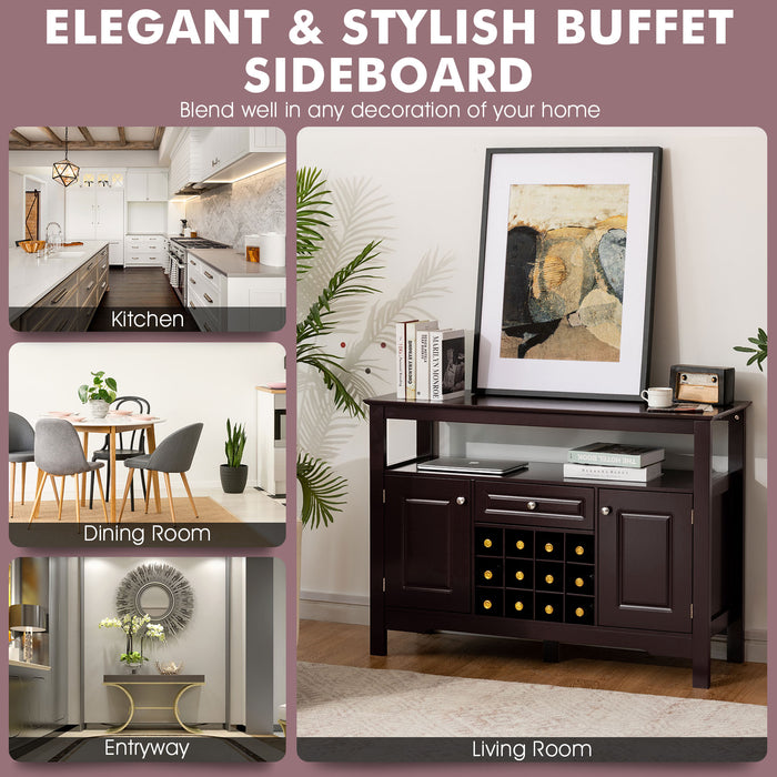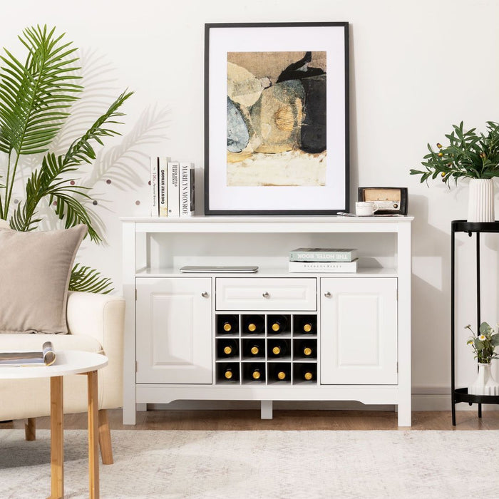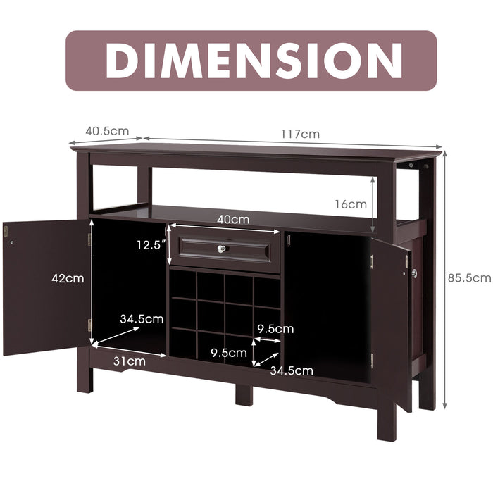 Ready to amplify the charm and utility of your dining space? Our elegant buffet server that doubles as a wine storage unit is a stylish addition to any modern home. Perfect for enthusiasts looking to display their wine collection and entertain guests, this versatile piece ensures your essentials are organized and accessible.
