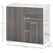 Finished in a radiant high-gloss white combined with light grey grain texture, this storage unit is poised to impress. Its adaptable character makes it the perfect fit for any room, be it a living room, dining area, bedroom, or home office. The sophistication of the design promises to infuse each space with a hint of modern elegance, making your home a haven of style and tranquility.