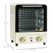 Measuring 32H x 25.5W x 27.5D cm, this oven's compact size makes it a perfect addition to any kitchen, big or small, without compromising on cooking capacity. The cream white finish, adorned with chic chrome accents and tempered glass door, exudes a classic retro charm with a contemporary twist, making it a stylish appliance you'll be proud to display.