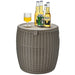 This cooler's versatility knows no bounds. Beyond keeping your beverages ice-cold, it functions admirably as a stylish side table for your patio setup, a convenient stool when seating is scarce, or an additional storage solution once the festivities end. Its multi-function capacity ensures you get the most out of your investment.