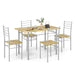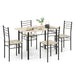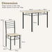This dining table set includes a dining table and 4 chairs, which is perfect to enjoy a joyful meal time with your family and friends together. Constructed by sturdy steel frame and wood-look tabletop, this kitchen set has great load capacity and stability. Since the smooth surface, it is easy to clean after dinner with a damp cloth. Besides, the stylish outlook can decorate your home better and offer you a comfortable sitting experience. And it can be widely used in home, restaurant or cafe to enjoy meals, small gathering and card games with your family or friends. 5 Piece Table Set: This functional furniture set includes 1 rectangle-shaped table and 4 high backrest chairs, which is ideal for small gathering to provide you a comfortable place to relax and talk. Additionally, all 4 chairs can be stored under table after use to maximize available space. Sturdy Construction and Durable Material: Heavy-duty steel frame and premium engineered wood tabletop keep this dining table set sturdy, durable and stable. Plus solid metal legs, this set offers reliable support and great load bearing. And reinforced craft enhance the rust and wear resistance of our table set. Contemporary Appearance: The less bulky dinging set creates an easy-matching style and livens up your decor. Modern sleek lines can add visual appeal to your house, and the combination with wood-look top enhances a warm feel and harmonious atmosphere at dining area. Wide Application: This stylish table set is suitable for both domestic use and commercial use, like home, restaurant, cafe, etc. It can gather 4 people around to enjoy the meal time together. In addition, the anti-slip feet pads of table and chairs will carefully protect your floor from scratch. Easy Maintenance and Quick Installation: The smooth water-proof tabletop can be cleaned easily by a damp cloth and maintained a new look through long-lasting use. Besides, with complete accessories and detailed instructions, this furniture can be assembled by you in a short time.