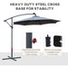 The parasol comes complete with a sturdy steel cross base, ready to be anchored for ultimate stability. Simply utilize additional weights, such as patio blocks or sandbags, for reinforced support that will keep your shaded oasis immovable.