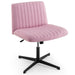 Elevate your space with this cross legged chair, designed to blend function and style seamlessly. Sit back and enjoy the plush comfort of the wide padded seat, designed to offer ample cushioning and support. The high-density sponge filling and soft linen fabric surface further enhance comfort. Moreover, featuring rocking function and flexible height adjustment, the home office chair can well suit specific needs. Made of strong cross metal base, the vanity chair presents excellent sturdiness and stability. Sleek and contemporary design complements any space, such as living room, bedroom, study and office. Cozy Cross Legged Sitting: The armless desk chair is designed with a wide U-shaped cushion for comfortable cross legged sitting. Additionally, its ergonomic backrest provides great support and reduces back strain. Enhanced Relaxation: The seat and backrest are filled with high-density sponge to ensure long-lasting comfort and support. Upholstered with skin-friendly linen fabric, this computer desk chair boasts a soft surface for enhanced sitting experience. Multiple Adjustable Design: Featuring 120° rocking function, the cross legged chair provides a soothing motion to keep you relaxed and stay focused. The home office chair offers a height range from 43-56 cm and 360°swivel design for customized sitting experience. Sturdy Cross Metal Base: The swivel office chair is supported by a sturdy cross metal base that can hold up to 150kg. In addition, non-slip foot pads prevent the floor from scratches and enhance stability. Versatile and Chic Addition: With modern style and elegant appearance, the cross legged chair elevates the look of any home office area. Whether you are working, reading, relaxing or gaming, this versatile desk chair caters to different needs.