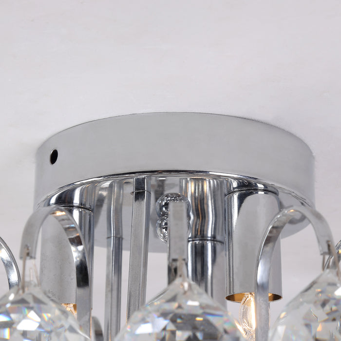 - Flush mount crystal ceiling light featuring 3 G9 lamp bases for up to 25W bulbs (not included).