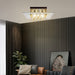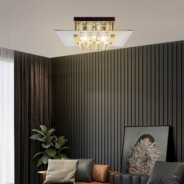 Our ceiling light features a contemporary design with a square stainless steel base that is both aesthetically pleasing and robust. The high-quality tempered frosted glass board complements this durability while adding an elegant touch. The interplay of light with the 16 crystal ball pendants and the cascade of 80 petite octagonal beads is sure to captivate and add a note of luxury to your home.