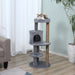 Featuring a combination of a top perch adorned with adorable ears, a snug hideaway, an intermediate platform, and an engaging hanging ball, this multi-level structure supports your cat's love of exploration and play.