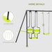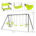 The swing set is spacious, measuring 355L x 184W x 186H cm, and boasts a generous weight capacity of 240 kg in total, supporting 40 kg per seat. The color scheme consists of vibrant green, sleek black, and classic silver that's sure to stand out in any garden setting.