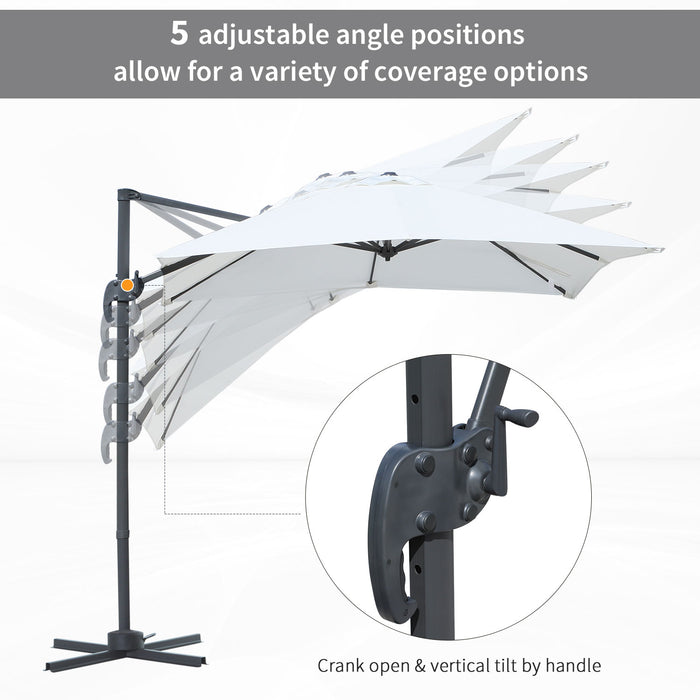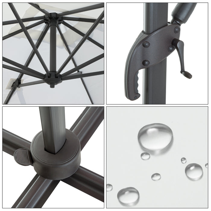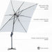 The umbrella features a vast 2.45M x 2.45M Square Canopy designed to provide ample coverage for your outdoor furniture. Crafted with a high-quality, fade-resistant material, it ensures you are sheltered from the sun's intense rays with enduring style and sophistication.