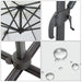 Standing firmly at the heart of this parasol is an aluminum pole, flanked by eight robust steel ribs. Each is meticulously powder-coated to ward off any damage from rust or corrosion, ensuring your umbrella remains a mainstay through varying weather conditions.