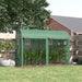 The Outsunny greenhouse is rendered in a subtle green, complementing its natural surroundings. The structure is built with a durable galvanized steel frame and a protective PE plastic cover. Dimensions are conscientiously considered for optimal functionality—200H x 300L x 100Wcm for the structure, with 35L x 35Wcm windows and a 124W x 139Hcm door. The cover boasts a density of 140 g/m², ensuring superior protection and longevity.