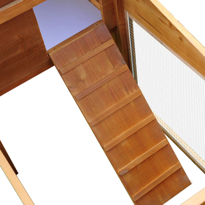 Built to last, the structure is composed of solid fir wood, facing the daily activities of your pets with resilience. The hutch also includes a weather-tolerant coat of paint to safeguard against moderate weather conditions, ensuring a secure and enduring haven for your furry companions all year round.