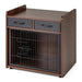 The 2-in-1 dog crate featuring rustic wood-like grain, allowing it to effortlessly merge with your home styles. The top surface and 2 fabric drawers provide a convenient spot to place lamps, books, or any other items you may need within reach. Therefor, the industrial dog kennel can double as an end table. Equipped with metal mesh, this dog crate ensures a ventilated resting area where your furry friend can relax and feel safe. Moreover, the metal door with latch will prevent your dog from wandering off. Equipped with adjustable foot pads, the indoor pet house not only protects your flooring but also adapts to uneven surfaces. The easy-to-clean surface requires only a gentle wipe, making it hassle-free to keep your pet's area fresh. Practical 2-in-1 Design: The innovative dog crate not only serves as a comfortable resting place for your furry friends but also doubles up as a functional side table, end table, or nightstand, which can seamlessly blend into your living room or bedroom decor. Extra Storage Space: With a spacious table top and 2 fabric drawers, you can conveniently store various items, from dog snacks and toys to other small essentials. The 2 detachable drawers make cleaning a breeze, ensuring that your space remains tidy and organized at all times. Safe and Comfortable Design: The door with a latch mechanism allows for effortless access for owners while ensuring puppies remain safely inside without any sudden dashes. Moreover, the small dog kennel features a metal mesh wall to promote ventilation and allow you to observe your pets. Long-lasting and Stable Structure: Made of 3-sided veneered thick boards, the indoor pet house is easy to maintain with a waterproof surface. Coming with 4 adjustable foot pads, the dog crate furniture can perfectly adapt to uneven floors to keep stability. For Small and Medium Breeds: The interior size of the furniture style dog cage is 59 X 44 X 41 cm(L × W × H), which is suitable for most small and medium sized dogs. Warm Tips: Please measure the pets length and height before purchase.