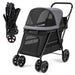 Provide Your Furry Companions with the Utmost Comfort and Convenience!Our dog stroller measures 110 x 57 x 102 cm (L x W x H) and loads up to 30 kg, thoughtfully crafted with a low entry design and a detachable back door ramp, which is designed for medium-sized and small-sized dogs, perfect for nervous pets or those with limited mobility such as elderly or injured dogs. The dual-entry option increases accessibility, complemented with 5-sided mesh windows and flexibly adjustable shade canopy, ensuring your pet’s comfort and safety throughout the journey. Equipped with shock-absorbing front wheels and large rear wheels with foot brakes, this stroller provides superior maneuverability and stability on any terrain, ensuring a smooth ride for your pet. Furthermore, it is effortlessly and quickly foldable with one click, offering unmatched convenience for storage and transport, making it a must-have accessory for pet owners on the go. Bullet Points: Low Entry Design and Adjustable Ramp: This dog stroller features a low ground clearance of 22 cm, which is friendly for pets with mobility challenges, such as senior dogs or dogs with healthy concerns. Furthermore, the versatile back door could transform into a ramp, providing a gentle incline for pets who require careful handling. One-Click Folding Design: The dog walking stroller can be effortlessly folded into a flat size by simply lifting the push the handle on both sides and secured with locking buckles. This convenient feature makes storage and transportation a breeze, perfect for on-the-go pet parents. All-Terrain Adaptability: This stroller features shock-absorbing front wheels that can rotate 360° and lock in place for stability. The large rear wheels come with single-foot brakes, providing a smooth and secure ride across varied terrains, ensuring your pet’s comfort. Dual Entry and Adjustable Canopy: Equipped with a large back door and a zippered mesh front door, getting in and out of the stroller is easy and flexible. There are 5-sided breathable mesh windows for increased airflow. Moreover, it features an adjustable and detachable canopy, offering sun protection and customizable shade for your furry friend. Convenient Features: The stroller includes a removable tray for enjoying snacks, a detachable storage bag for carrying pet supplies, a comfy padded handle for easy maneuvering, a soft padded cushion for added comfort, and a safety leash to secure your pet during walks. Sturdy and Reliable Construction: Constructed from a thickened 600D oxford cover and a robust metal frame, the stroller is reliable and built to last, providing a comfortable and safe environment for your lovely furry friends. Moreover, the cover can be easily detached for cleaning, always keeping hygienic. Size: The dog wagon measures 110 x 57 x 102 cm (L x W x H) and the carriage measures 67 x 37 x 69 cm (L x W x H), which are designed for puppies, small-sized dogs, and medium-sized dogs, particularly those who are elderly or have mobility issues. Note: Please measure the body length and height of your pet before purchase. It is recommended to reserve 5 cm for each interior dimension to keep your pet comfy.