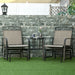 Adjoining the two gliding seats is a gracefully integrated table, creating the perfect nook for your beverages, books, or other essentials. Topped with a tempered glass surface, the table combines solid durability with a refined aesthetic, making it both a safe and stylish addition to this outdoor ensemble.
