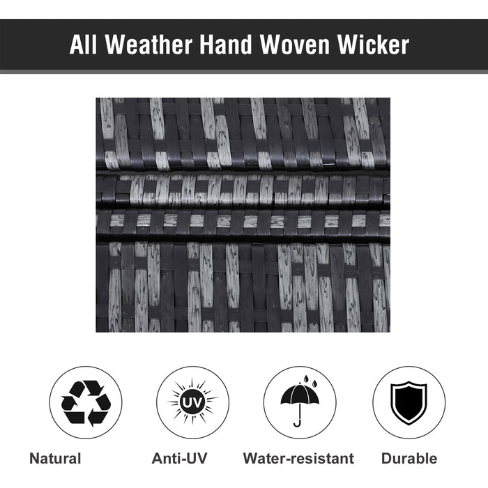 PE wicker artfully handwoven around a sturdy, powder-coated frame promises unwavering durability alongside exceptional resistance to UV exposure and ever-changing weather conditions.