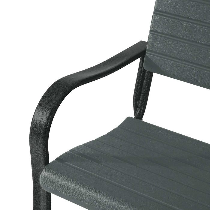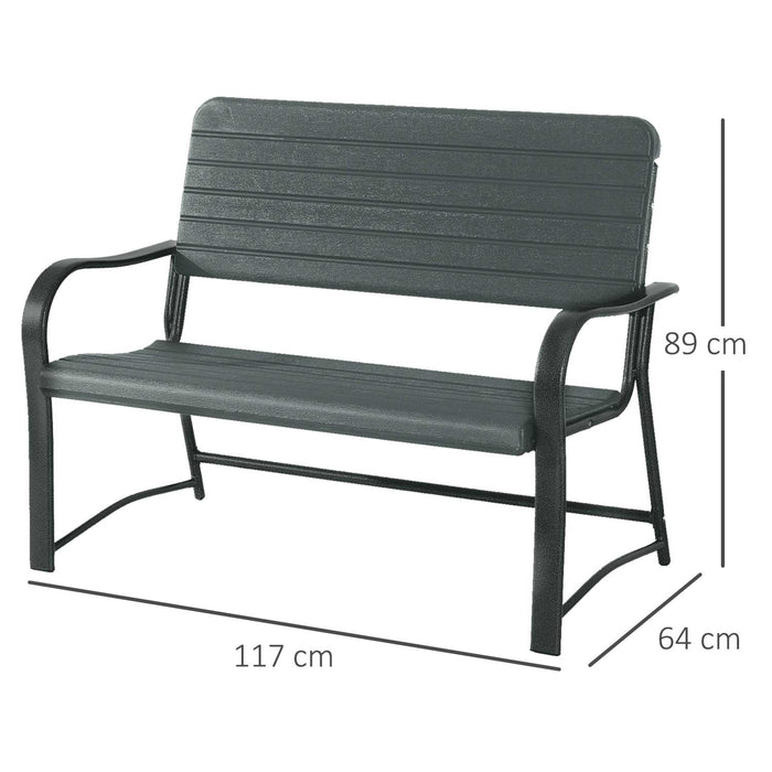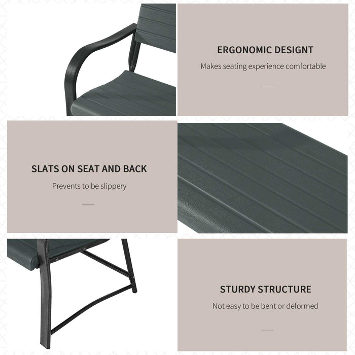 Our outdoor bench showcases a sleek design, featuring a robust metal frame complemented by stylish HDPE slats. The harmonious blend of these materials not only offers durability but also adds a modern touch to your outdoor décor. The bench is built tough, with a large weight capacity to accommodate you securely with room to spare.