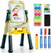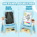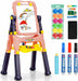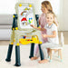 The magnetic art easel is an optimal gift for your little artist, which will enrich kids' daily life and improve their painting interest. The combination of tapered and triangular structure enhances the stability to ensure kids’ security effectively. When separated with triangular bracket, drawing board with handle allows kids to carry it and draw anywhere. Long and short easel legs help kids adjust height as per their own preference, offering years of fun as kids grow. And simple installation will never hinder budding artist's attempt to doddle freely. In addition, 360 degree rotating drawing board will add more fun. Soft as well as cute colors make the standing toddler art easel an attractive toy further. A large tray within arm's reach is able to hold all art accessories for kids' easy access. If you are looking for magnetic art easel, don't hesitate to buy it! Smooth track allows double sided drawing board to rotate freely Chalkboard and whiteboard satisfydifferent painting requirements Flexible paper clips can hold papers tightly Erase and magnetic beads can be attracted on the magnetic board Tapered and triangular structure ensures excellent stability Adjustable height is suitable for kids with different height or ages Can be detached from frame and used as handheld drawing board Include eraser, chalks, magnetic beads, markers, cups and chalk cap Large tray facilitates arranging art accessories orderly Safe PP material and ASTM certification ensure reliable usage Easy to assemble, store and maintain Perfect Christmas, birthday or other important festive gift for kids toddlers Suitable for kids' art activities in classroom, preschool, playroom, etc