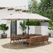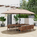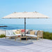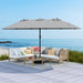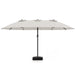 Crafted from high-quality 180g polyester fabric, it offers optimal shade and effectively blocks sunlight, while being waterproof and fade-resistant to maintain its vibrant color and appearance season after season. The wide stable base, featuring a sturdy cross metal design and two sandbags that can hold up to 180 lbs of sand, ensures stability in any weather. Besides, our umbrella's heavy-duty structure, with thickened steel pipes and 12 ribs, provides superior wind resistance for safety and stability in windy conditions. Operation is a breeze with the smooth hand-cranked mechanism, and the double-sided design offers ample shade for large gatherings, making it perfect for patios, squares, and seaside settings. Bullet Point:Premium Polyester Fabric: This double-sided patio umbrella is crafted from high-quality 180g polyester fabric, which provides optimal shade and effectively block the sunlight. This fabric is water-proof and fade-resistant, maintaining its vibrant color and appearance over time. Wide Stable Base: For ultimate stability, our umbrella boasts a wide stable base that can be easily covered with sandbags, keeping the umbrella stand steady in various weather conditions. The base consists of a sturdy cross metal base and 2 sandbags, which can be filled with up to 58 kg of sand in total. Heavy-Duty Structure: This outdoor umbrella features thickened steel pipes, coated with powder to prevent rust and corrosion. The 12 heavy-duty ribs offer superior wind resistance, ensuring the umbrella's safety and stability in windy conditions. Easy Operation and Wide Application: The smooth hand-cranked mechanism allows for easy operation, making it convenient to store the umbrella when not in use. This double-sided umbrella provides a larger shade area, perfect for accommodating large tables and chairs, and making it ideal for patio, square and seaside. More Practical Designs: The double stitching on the rib protectors ensures durability, while the convenient fixation strap allows for easy and secure closure. Besides, the air-vented top design promotes air circulation, and the premium safety pin secures the canopy in place, providing an extra layer of safety.