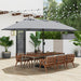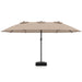 Colour: Beige, Brown, Blue, Grey, Orange, Red, Turquoise Material: Steel + Polyester Fabric + Aluminum Alloy Umbrella Outer Dimension: 464 cm x 286 x 248 cm (L x W x H) Umbrella Inner Dimension: 443 x 265 cm x 248 cm (L x W x H) Ground Clearance of the Umbrella Edge: 198 cm Umbrella Stand Dimension: 62 cm × 62 cm × 13 cm (L × W × H) Net Weight: 16.5 kg Package includes: 1 x Double-sided Umbrella 1 x umbrella Stand 1 x Instruction Manual