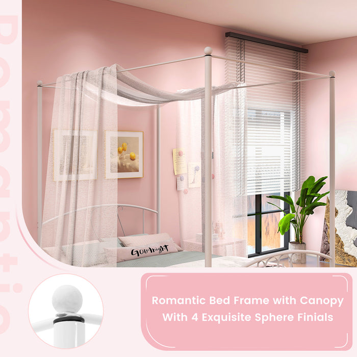 Create a magical atmosphere in your bedroom by draping delicate curtains over the canopy frame. Its tasteful headboard and footboard further accentuate its aesthetic allure, molding your personal haven into an enchanting space to unwind.