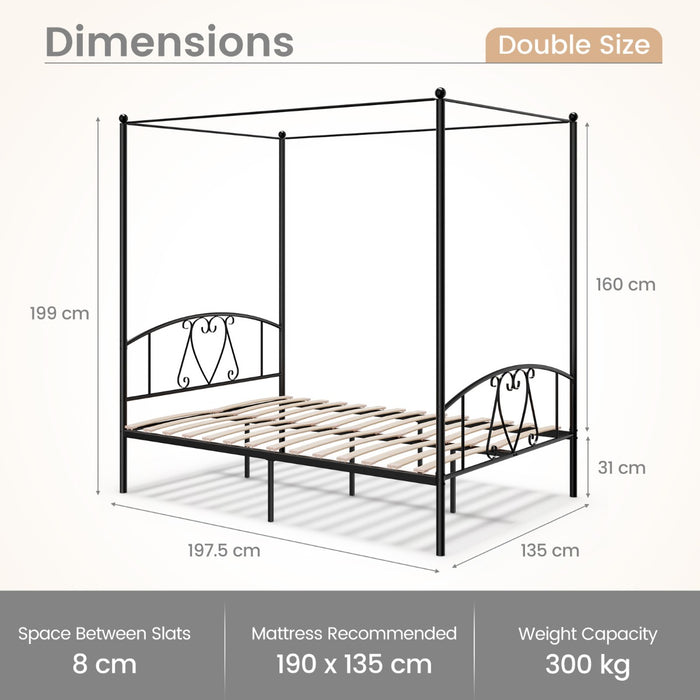 The canopy bed frame arrives with comprehensive guidance for setup, ensuring that the assembly process is as calm and effortless as your eventual slumbers. Its dimensions of 198 x 135 x 200 cm (L x W x H) make it a seamless addition to almost any room, promising a snug fit and a generous sleep surface.