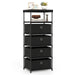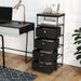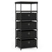 Color: Rustic Brown & Black Material: MDF, Non-Woven Fabric, Metal Overall Dimensions: 40 x 30 x 99.5 cm (L x W x H) Size of Shelf: 36 x 30 cm (L x W) Shelf Spacing: 16 cm Size of Each Drawer: 36 x 29 x 16 cm (L x W x H) Overall Load Capacity: 22.5 kg Box Qty: 1 Net Weight: 3 kg